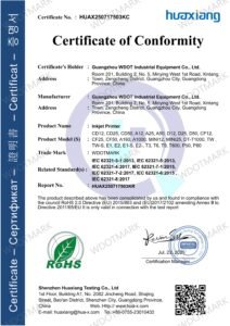 Guangzhou WDOT Industrial Equipment Co., Ltd. is proud to announce that its WDOTMARK branded full range of industrial marking equipment has successfully obtained CE & RoHS dual certifications, enabling compliant expansion into the EU market!